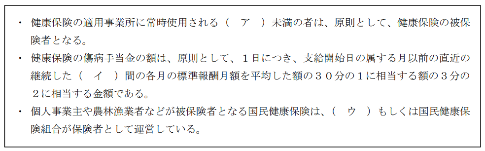 ライフプランニング学科2023年9月問3社会保険_公的医療保険・介護保険FP2級 2023年9月 学科 問3公的医療保険に関する次の記述の空欄 (ア) 〜 (ウ)にあてはまる語句の組み合わせとして、最も適切なものはどれか。 A(ア) 75歳 (イ) 6ヵ月 (ウ) 国B(ア) 70歳 (イ) 12ヵ月 (ウ) 国C(ア) 75歳 (イ) 12ヵ月 (ウ) 都道府県および市町村 (特別区を含む)D(ア) 70歳 (イ) 6ヵ月 (ウ) 都道府県および市町村 (特別区を含む)