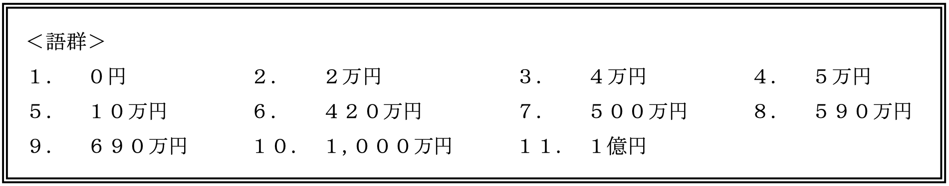・「山根さんが仕事中の事故でケガを負い、その日から20日間病院に入院した場合(手術は受けていない)、受け取れる保険金はです。」