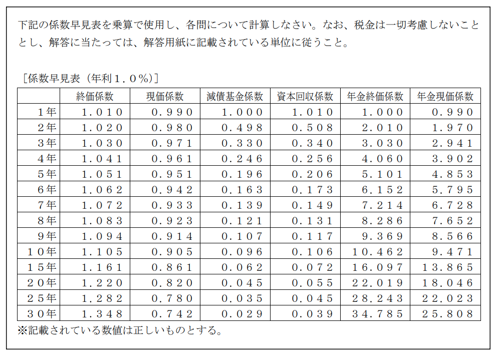 ライフプランニング実技2022年5月問276つの係数FP2級 2022年5月 実技 問27長岡さんは、老後の生活資金の一部として、毎年年末に300万円を受け取りたいと考えている。受取期間を20年間とし、年利1.0%で複利運用する場合、受取り開始時にいくらの資金があればよいか。 円回答を入力円解答する