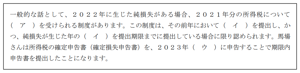タックスプラン実技2022年9月問18所得税の申告と納付_純損失の繰越控除