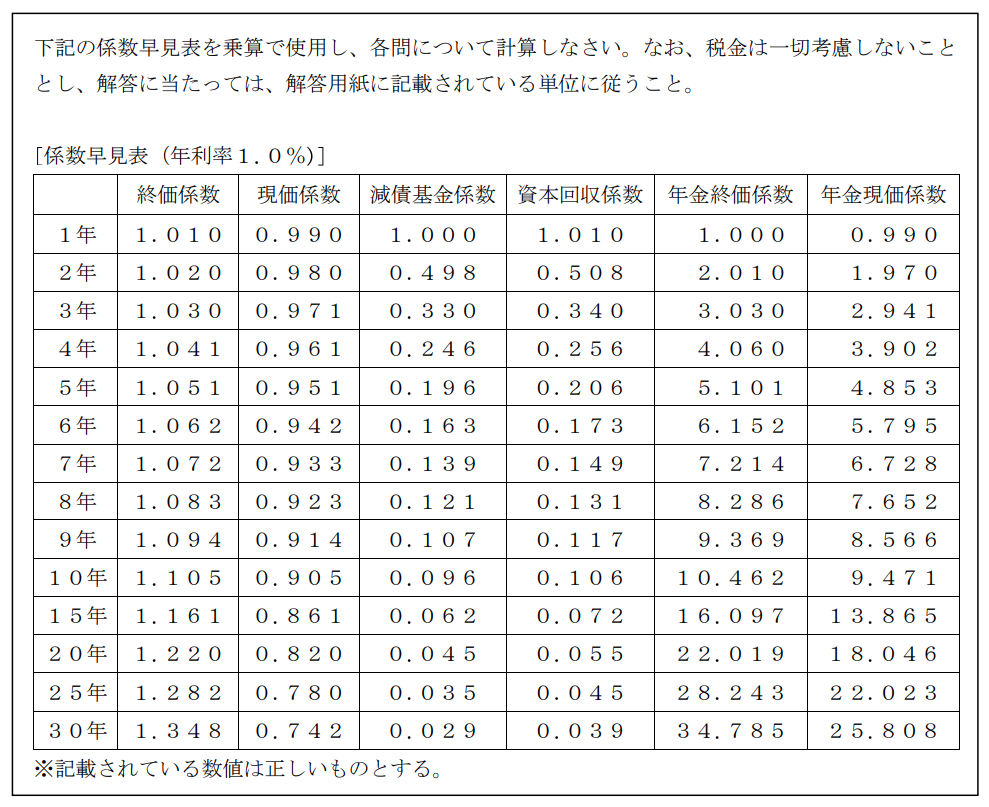 ライフプランニング実技2022年9月問266つの係数FP2級 2022年9月 実技 問26山本さんは、老後の生活資金として、毎年年末に240万円を受け取りたいと考えている。受取期間を25年とし、年利1.0%で複利運用をした場合、受取り開始年の初めにいくらの資金があればよいか。 円回答を入力円解答する