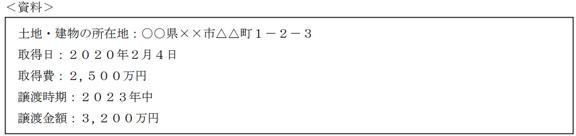 橋口さんは、自身の居住用財産である土地・建物の譲渡を予定しており、FPで税理士でもある吉田さんに居住用財産を譲渡した場合の3,000万円特別控除の特例(以下「本特例」という)について質問をした。下記<資料>に基づく本特例に関する次の(ア) - (エ)の記述について、適切なものには○、不適切なものには×を解答欄に記入しなさい。