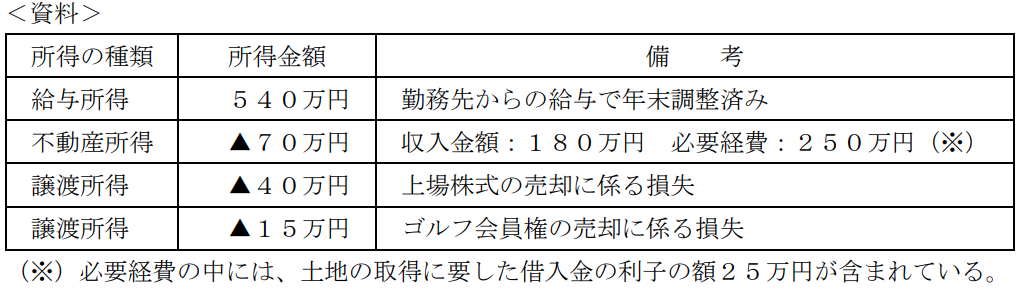 会社員の増田さんの2023年分の所得等が下記<資料>のとおりである場合、増田さんが2023年分の所得税の確定申告を行う際に、給与所得と損益通算できる損失はいくらになるか。なお、▲が付された所得金額は、その所得に損失が発生していることを意味するものとする。また、記載のない事項については一切考慮しないものとし、解答に当たっては、解答用紙に記載されている単位に従うこと。