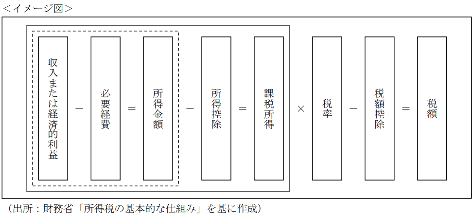 FPの吉田さんは、個人に対する所得税の仕組みについて耕治さんから質問を受けた。吉田さんが下記<イメージ図>を使用して行った所得税に関する次の(ア) - (エ)の説明のうち、適切なものには○、不適切なものには×を解答欄に記入しなさい。