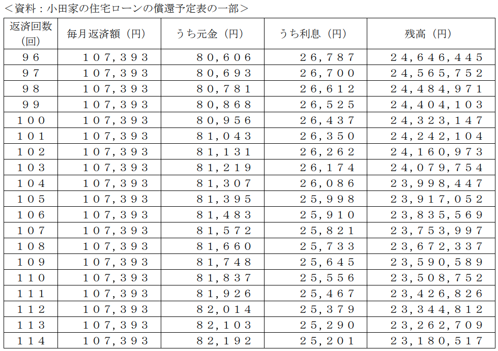 孝義さんは、現在居住している自宅の住宅ローンの繰上げ返済を検討しており、FPの東さんに質問をした。孝義さんが住宅ローンを96回返済後に、100万円以内で期間短縮型の繰上げ返済をする場合、この繰上げ返済により短縮される返済期間として、正しいものはどれか。なお、計算に当たっては、下記<資料>を使用し、繰上げ返済額は100万円を超えない範囲での最大額とすること。また、繰上げ返済に伴う手数料等は考慮しないものとする。
