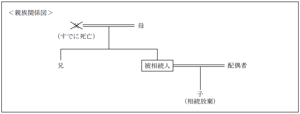 下記<親族関係図>の場合において、民法の規定に基づく法定相続分および遺留分に関する次の記述の空欄(ア) - (ウ)にあてはまる適切な語句または数値を語群の中から選び、その番号のみを解答欄に記入しなさい。なお、同じ番号を何度選んでもよいものとする。また、記載のない事項については一切考慮しないものとする。
