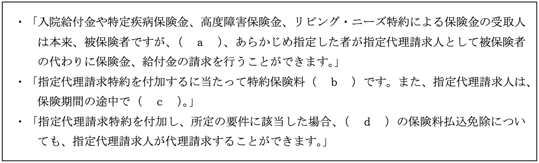 リスク管理実技2025年5月問15生命保険_指定代理請求特約