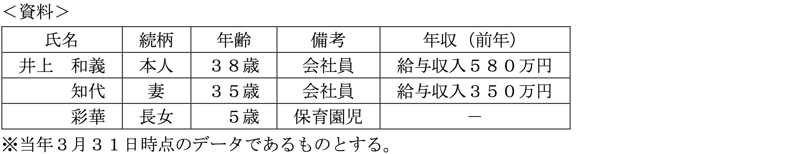 井上和義さんの家族構成等は下記<資料>のとおりである。和義さんが在職中に38歳で死亡した場合、和義さんの死亡時点において妻の知代さんが受け取ることができる遺族給付の組み合わせとして、最も適切なものはどれか。なお、和義さんは、大学卒業後の22歳から死亡時まで継続して厚生年金保険の被保険者であったものとする。また、家族に障害者に該当する者はなく、記載以外の遺族給付の受給要件はすべて満たしているものとする。