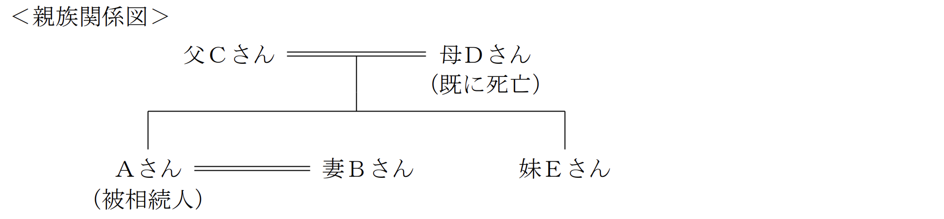 相続・事業承継学科2022年5月問57相続_遺留分・法定相続分FP3級 2022年5月 学科 問57( )内にあてはまる最も適切な文章、語句、数字またはそれらの組合せを選択してください。下記の<親族関係図>において、Aさんの相続における父Cさんの法定相続分は、( )である。 A2分の1B4分の1C3分の1