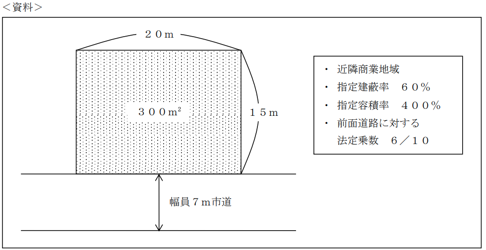 不動産実技2022年9月問6法令上の規制_建築基準法・農地法FP3級 2022年9月 実技 問6建築基準法に従い、下記<資料>の土地に建築物を建築する場合の延べ面積(床面積の合計)の最高限度として、正しいものはどれか。なお、記載のない条件については一切考慮しないこととする。 A1,260m2B1,200m2C180m2