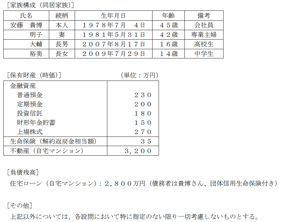 安藤貴博さんは株式会社SKに勤務する会社員である。貴博さんは今後の生活設計についてFPで税理士でもある浅見さんに相談をした。なお、下記のデータはいずれも2023年9月1日現在のものである。